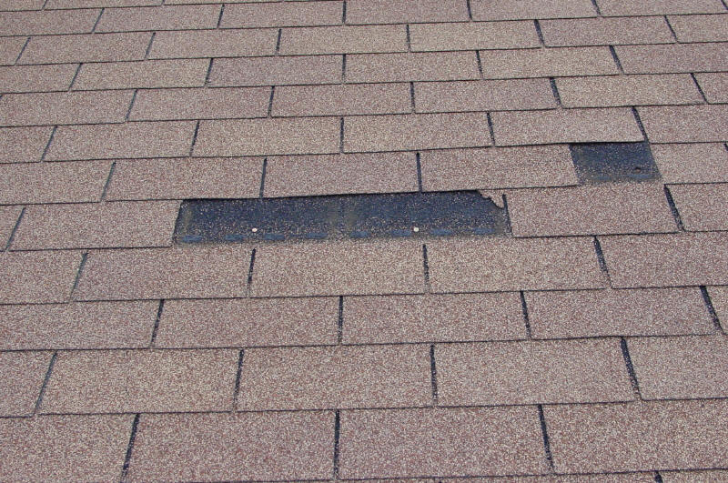 Missing Shingles usually occur after high winds (30 MPH or more) catch the shingle and tear it from the rooftop. Usually the missing shingles can be found in your yard or the yard of a neighbor.